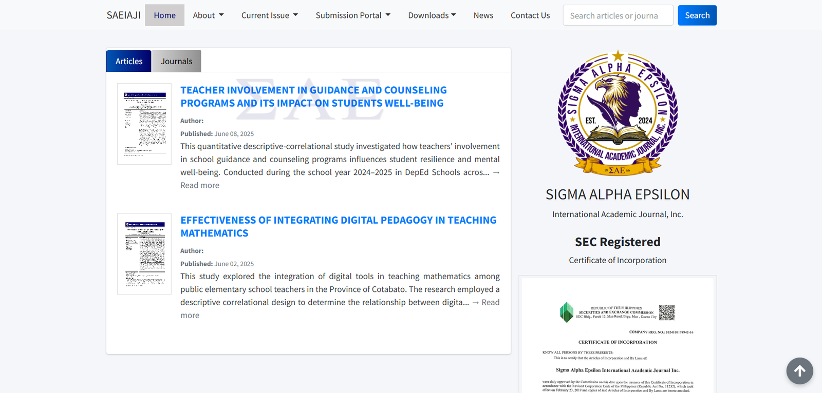 SAEIAJI is a web-based information system designed to streamline the management and online publication of scholarly journals. It provides essential functionalities, including manuscript submission handling, peer review coordination, and editorial processing, ensuring a seamless workflow for academic publishing. By automating and optimizing these processes, SAEIAJI enhances efficiency, accessibility, and global dissemination of research.